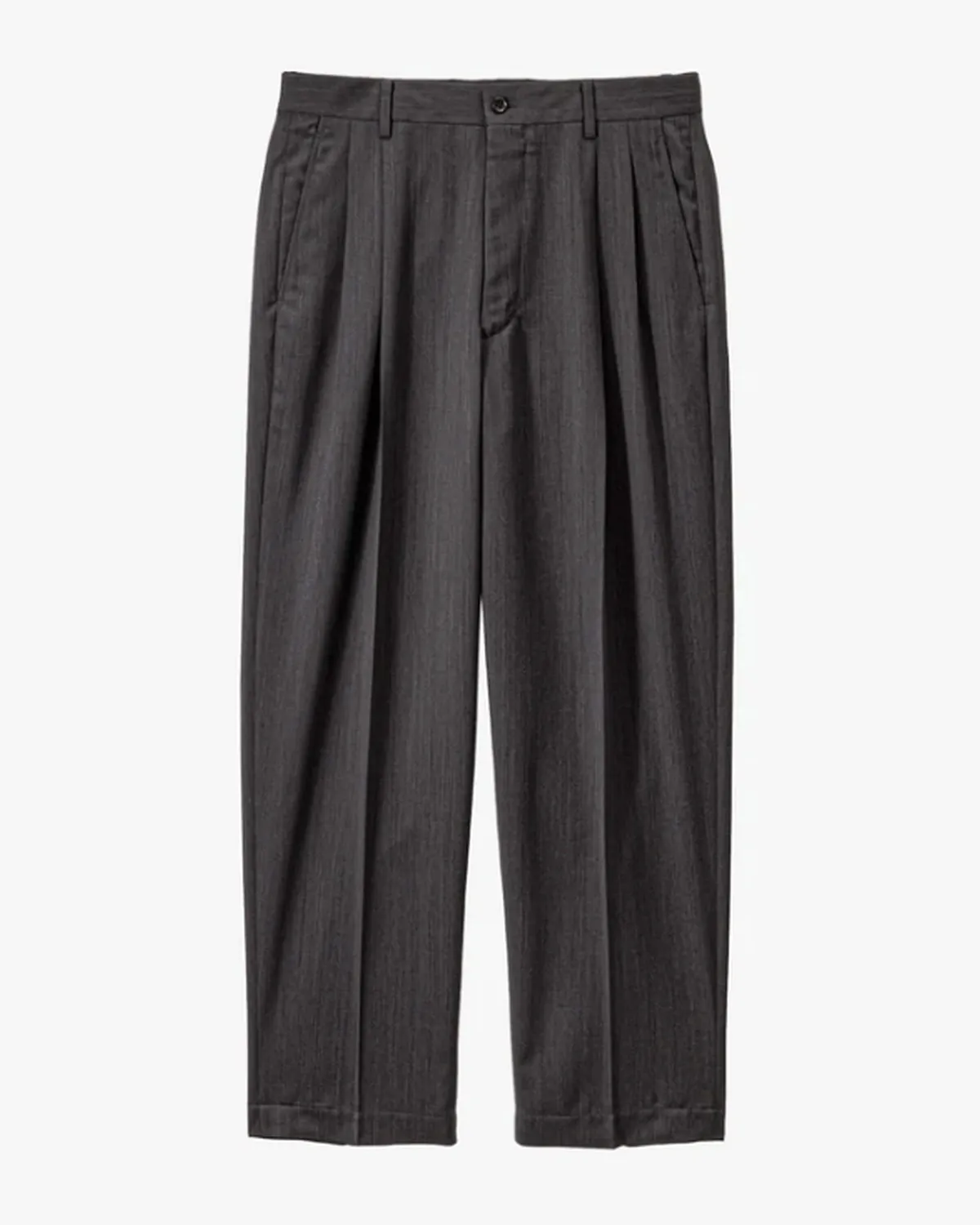 Melange Herringbone Pleated Wide Trousers